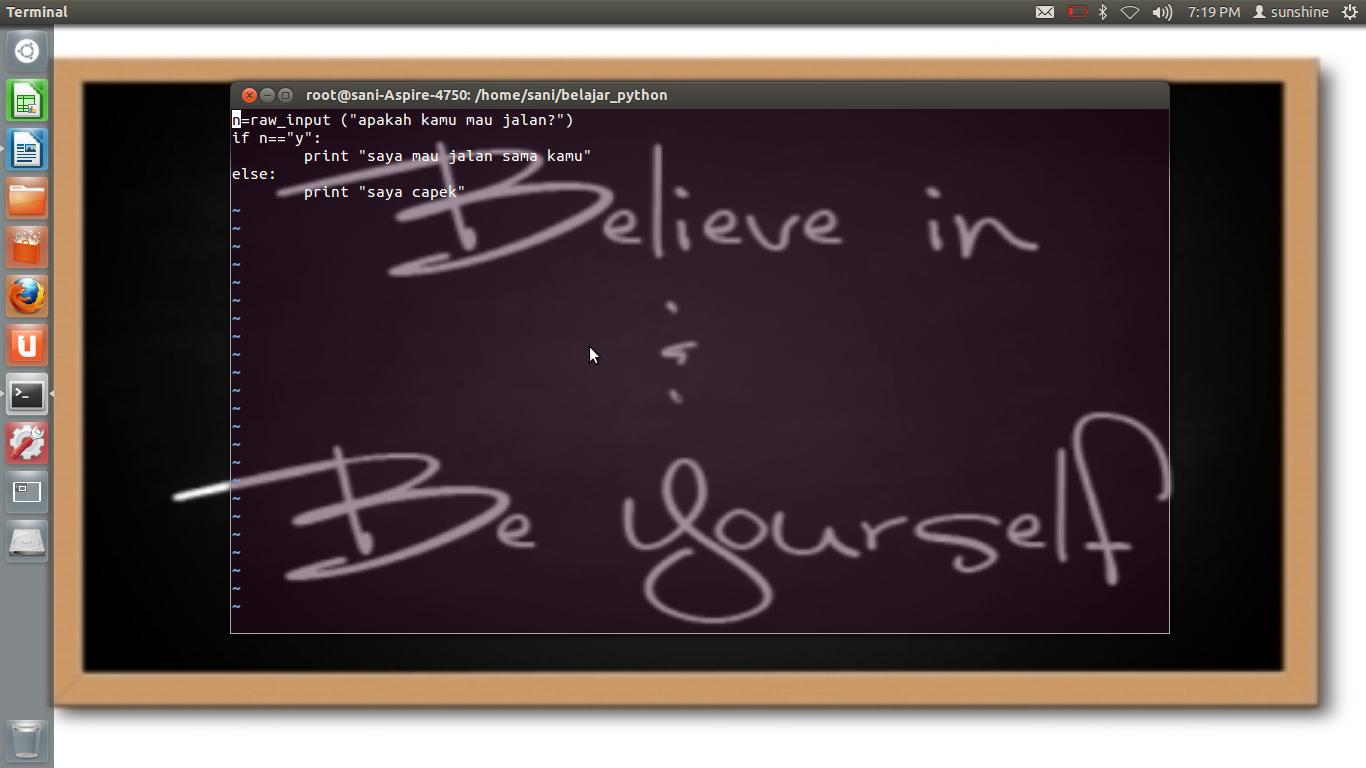 Emh...tadi abis UTS Python nah,,,dapet soal buat memperbaiki program kalkulator yang error,setelah di oprek di terminal adalah jadinya seperti ini :
